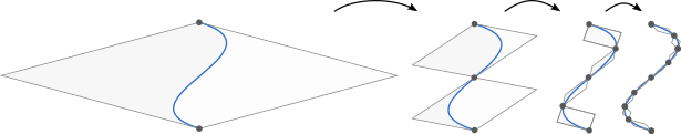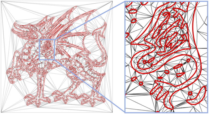 We shield off the curves' complexity using envelope triangles. These are elements specifically designed to perfectly conform to the curve while being free of inversions.